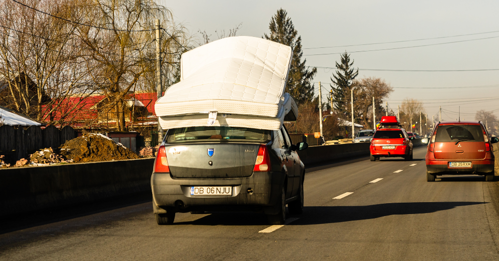 The mattress-on-roof story pops up so often it’s practically its own genre. In Ontario, police pulled over a driver who’d secured two mattresses to his car with a bedsheet. Not ratchet straps. Not rope. A bedsheet. Passengers were gripping the fabric edges from inside the car while they drove.